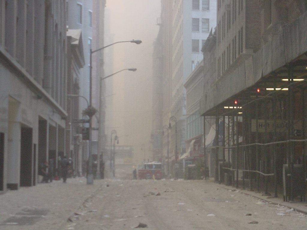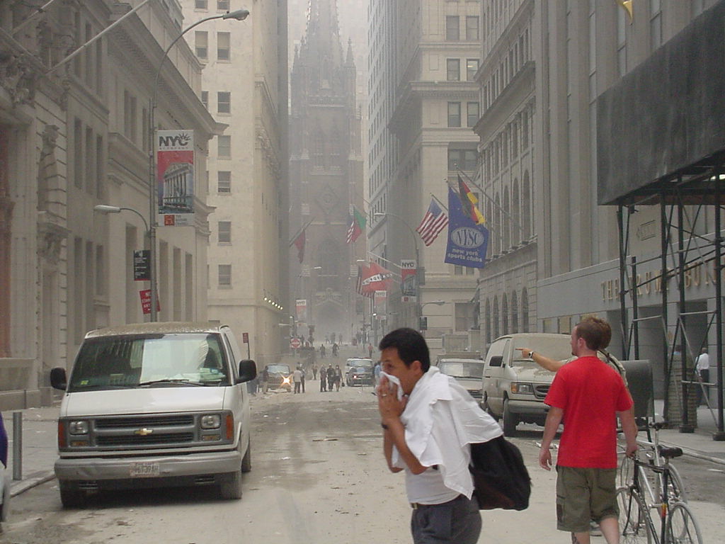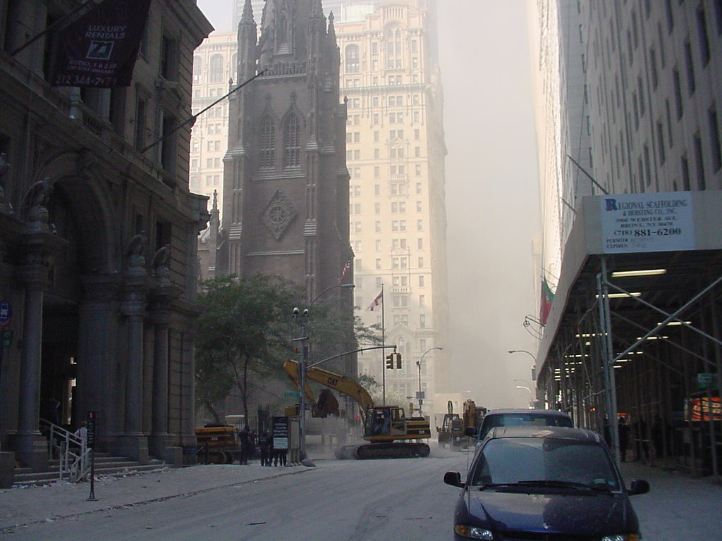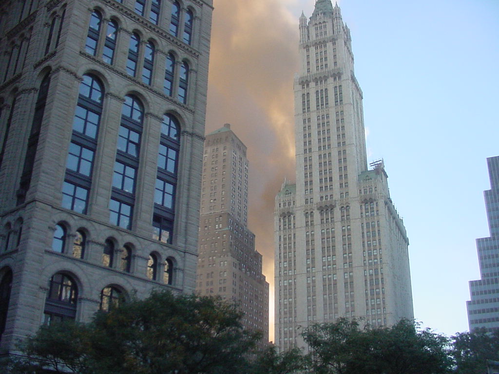 From Pace University looking at Woolworth Building with WTC smoke in background