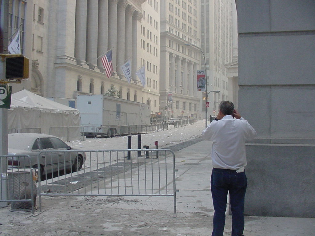 Backhoes came up Wall Street, turned left on Broadway and proceed right down